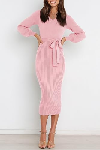 Caractéristiques : élégante, sexy et décontractée, coupe ajustée, la robe pull mettra en valeur votre silhouette féminine parfaite, vous rendant plus tendance. Le col rond, les manches longues lanterne, la longueur midi, le tricot côtelé, la couleur unie et la taille nouée rendent cette robe classique et tendance. L’épaisseur de cette robe pull est idéale pour l’automne, l’hiver et le début du printemps, super chaude