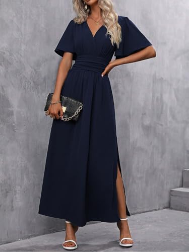 Caractéristiques : Robe élégante décontractée/semi-formelle, col en V cache-cœur, Manches Courtes Papillon, côté fendu, taille haute plissée, design froncé, détails froncés et couleur unie. Il est élégant et flatteur pour montrer votre charme