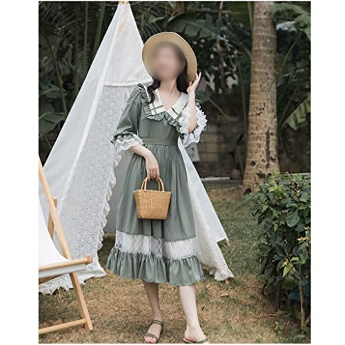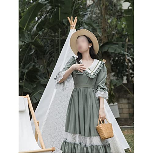 Robe de prairie verte de style imitateur, robe décontractée ample en dentelle de leader de la forêt rétro.