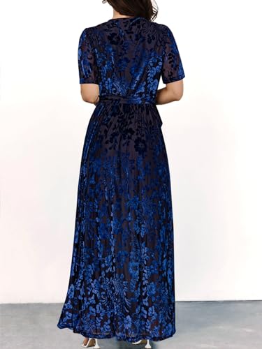 La robe formelle à manches volantées et col en V montre la féminité, la sophistication et l’élégance sont la clé quand il s’agit des robes d’automne maxi formelles Que vous ayez les cheveux longs ou courts, quel que soit le style que vous avez, cette robe portefeuille en velours floral est toujours parfaite pour les robes d’invités de mariage.