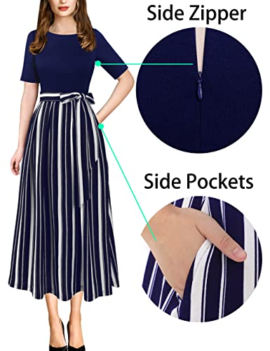 Style : col rond, manches courtes, détails plissés, deux poches pratiques, ceinture à nouer à la taille [la ceinture à la taille ne peut pas être retirée], silhouette trapèze aide à bien cacher les imperfections du corps, fermeture éclair dissimulée dans le dos.