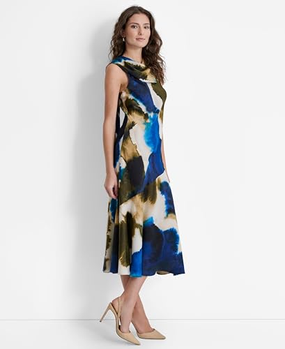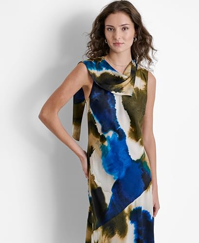 La robe à enfiler DKNY en satin sans manches avec col en cravate est une pièce captivante et élégante qui combine des couleurs vives avec une silhouette moderne, parfaite pour faire une déclaration en toute occasion. Cette robe à longueur cheville dispose d’un imprimé unique caractérisé par un motif tourbillon d’encre explosif qui crée un effet visuel dynamique et artistique.